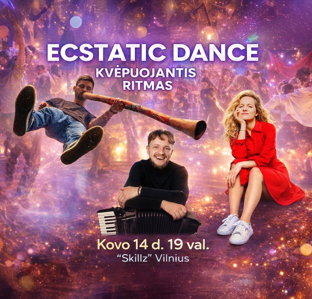 🙌 Renginį ves „Ecstatic Dances” projekto įkūrėja Agnė Doveikaitė. Gyvais instrumentais gros Andrius Burba (didžeridu) ir Aidas Kvetkauskas (akordionas).